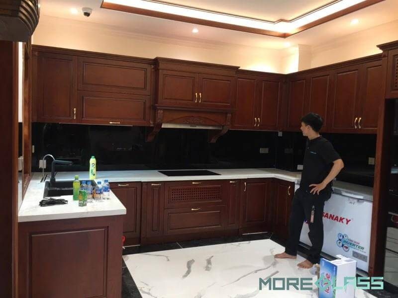 Vẻ đẹp sang trọng và cao cấp của kính ốp bếp màu đen đang góp phần hoàn thiện phòng bếp của MoreGlass.